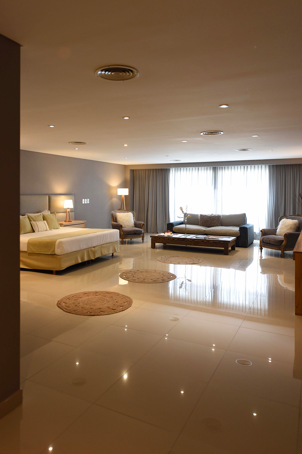 Disfrute de una espaciosa y exclusiva suite de 80 m², decoración minimalista, cama King size y baño con doble bacha y doble ducha. Cuenta además con amplio y relajante living, TV Smart de 55 pulgadas, conexión inalámbrica a Internet, cómodo escritorio de trabajo y cafetera de cortesía.